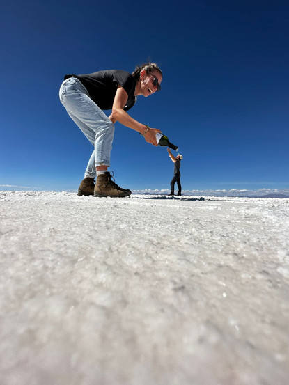 4 von 5 von euch Bloglesenden wissen, dass Sonja die Queen der Selfies und Fotos ist, sie ist auch am Anfang noch am Start und versucht Alex zu motovieren - aber selbst ihr geht das Ganze irgendwann zu weit. Ein, zwei Shots ok. Aber wir verbringen letztendlich fast die Hälfte der Tour mit Fotoshootings, auf die wir keine Lust haben, und unsere Galerie ist jetzt ein Sammelsurium von albernen 160 Fotos und Videos, die wir nicht wollen. Und Geld haben wir dafür auch noch gezahlt! Viel lieber hätten wir noch mehr von der tollen Uyuni Wüste erkundet und den Tag besser genutzt.
