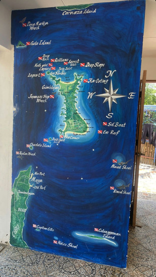 Obendrauf zeigt uns der Tauchlehrer Kevin auf der Karte, dass fast alle Tauchgänge hier aufgrund der Tiefe von bis zu 30 Metern nur für Advanced Divers möglich sind. Er rät uns, den fortgeschrittenen Schein zu machen, um das ganze Erlebnis zu bekommen. Während unser Geldbeutel sich verzweifelt windet, schreit und uns tunlichst rät, es nicht zu tun, entscheiden wir uns einfach dafür.