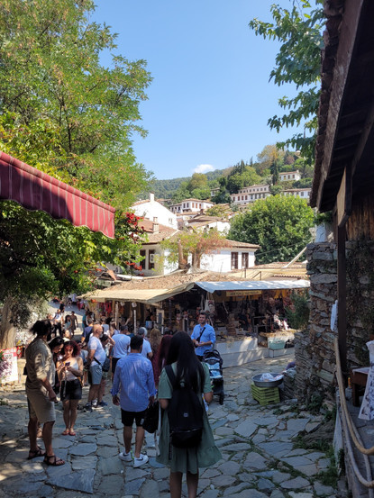 Gestresst, zerkratzt und genervt gehen wir das Flussbett weiter abwärts und finden einfach nicht aus diesem Gebüsch heraus. Laut Karte sind wir jedoch immer noch richtig. Dann, nach einem weiteren Kampf mit Ästen und Stacheln, kommen wir endlich in eine Lichtung und sehen einen Weg. Geschafft! Wir erreichen halb verdurstet und geschändet das Dorf Sirince und uns erwartet der nächste Horror. M e n s c h e n m a s s e n tummeln sich in den kleinen Gassen und die Souvenirläden stapeln sich. Wir schlüpfen in unsere mitgebrachten Flipflops, stehlen uns in eine der vielen Weinbars und verbringen drei Gläser Wein damit, Menschen zu beobachten, unser Leben zu zelebrieren und können nach dem ersten Glas schon wieder über die ganze Aktion schmunzeln. Dieser Ausflug war eher nix.