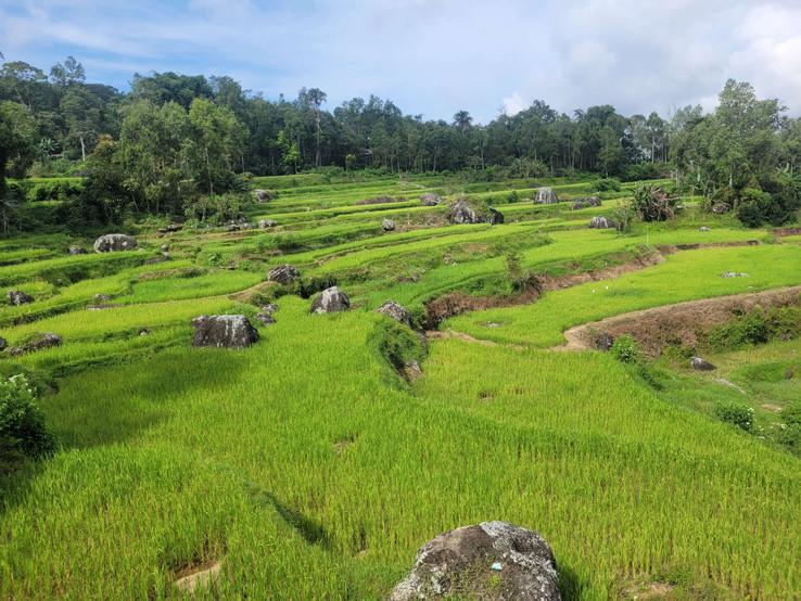 Das war meistens die Reaktion, wenn wir Leuten erzählt haben, dass wir nach Sulawesi fahren. Sulawesi ist eine der 17.000 Inseln von Indonesien und was sollen wir sagen ... wir waren von Sekunde eins an verliebt. In unserer letzten Philippinen-Woche hatten wir sogar irgendwie das Gefühl, Südostasien-müde zu sein. Ziemlich schnell haben wir gemerkt, dass wir nur Philippinen-müde waren, denn Sulawesi zeigt sich als eine andere Welt. In Makassar, der großen Stadt am Südende der Insel, angekommen, nehmen wir nach wilden Verhandlungen mit Händen und Füßen am Flughafen, einen privaten Fahrer von 18 Jahren. Nach kurzen Verhandlungen mit seinem Chef fahren wir los und merken bald, dass dies wohl seine erste Fahrt auf dieser Strecke ist. Unsicher und in Zeitlupe bewegen wir uns auf engen und von Schlaglöchern geprägten Straßen gen Norden. Nachdem uns jeder Bus, Roller sowie jedes Auto Indonesiens überholt hat, kommen wir nach 7,5 Stunden im eigentlich nur 212 km entfernten Sengkang an. Unterwegs sehen wir bereits fantastische Landschaften und unzählige Einheimische winken uns begeistert zu. Bei unserem Lunch-Stop machen wir mindestens 60 Selfies mit Kindern und Familien - mit unserem Erscheinungsbild scheinen wir hier etwas Besonderes zu sein.