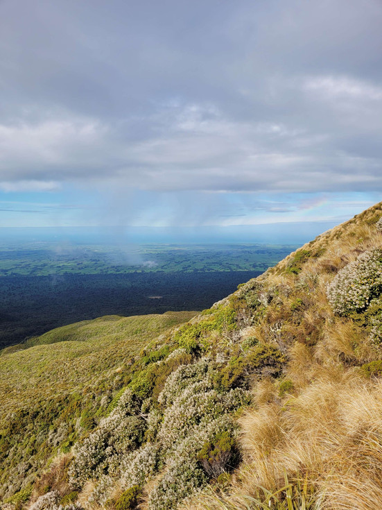 Die erste Lichtung ermöglicht uns einen großartigen Blick auf den Vulkan, der übrigens auch Mount Egmont genannt wird.