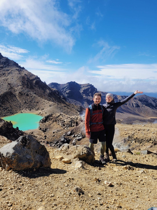 Es geht einige Stufen steil hinauf - nach 15 Wanderungen wissen wir, dass Stufen mit das Anstrengendste sind - und wir marschieren mit vielen anderen Wanderern zum... - hm, wohin eigentlich? Wir denken ja immer noch zur Spitze des Tongariro, doch merken an unserem höchsten Punkt, dass wir da wohl doch nicht mehr rauf gehen werden. Macht nichts, denn die Aussicht ist absolut umwerfend!