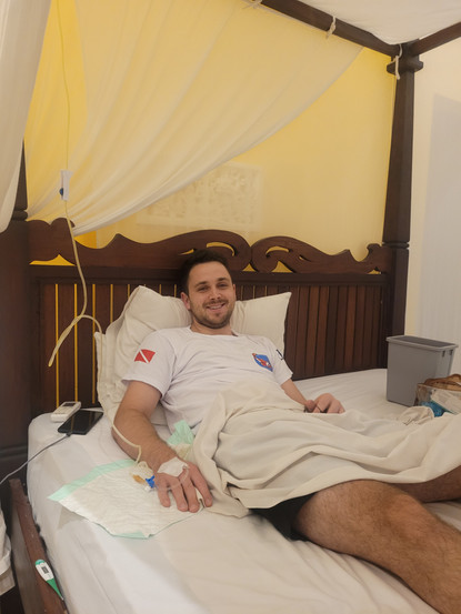 Als ob eine Erkältung noch nicht genug nervt, hat Alex am nächsten Tag auch noch Fieber. Zunächst gehen wir von einer einfachen Erkältung vom Tauchen aus. Als das Fieber auf über 39 Grad steigt und Alex ein echtes Häufchen Elend ist, bekommen wir doch ein mulmiges Gefühl und lassen eine Ärztin kommen. Sie geht von einer dicken, fetten Food Infection aus und hängt Alex erstmal im Hotelzimmer an den Tropf. Nach einer Paracetamol- sowie Vitamininfusion plus Anti-Übelkeitsspritze fühlt er sich schon einiges besser, braucht aber auf jeden Fall ein paar Tage und einige Antibiotika, um wieder fit zu sein. Tag 7 und 8 bleiben also ruhig und wir lassen unseren wunderbaren Baliaufenthalt ganz langsam ausklingen.